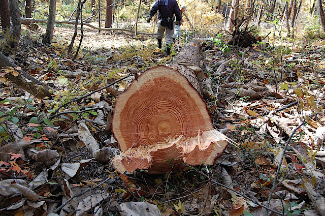 92年生きてきたカラマツを伐倒しました。